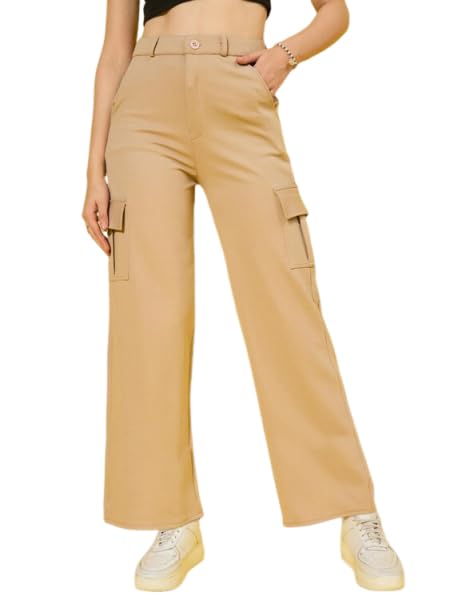 VEERSTOW Women’s Korean High Waist Pants for Women Cargo Pocket Comfort and Stylish Baggy Polyster Blend Trousers for Women and Girls (free size)
